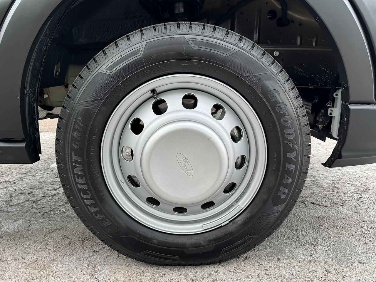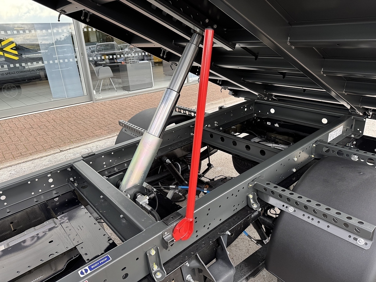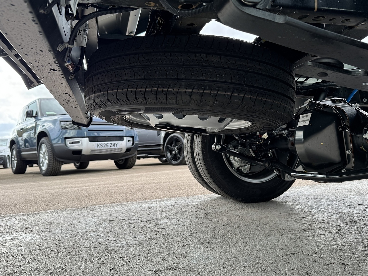 TWIN REAR WHEELS, FULL SPARE WHEEL AND SAFETY INSPECTION ARM.