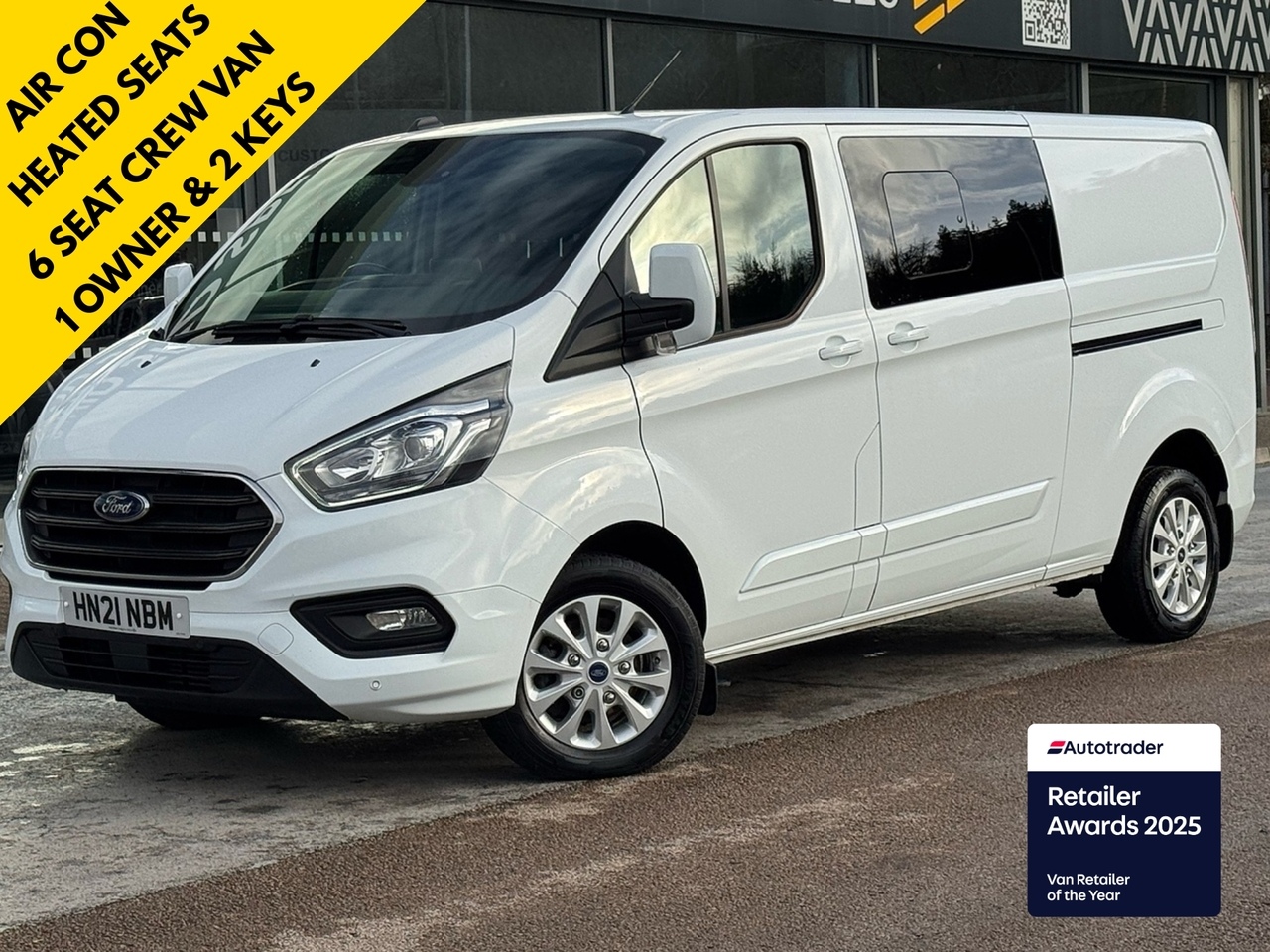 Ref – HN21NBM - David Spear Commercial Vehicles presents this 1 Owner Frozen White FORD TRANSIT CUSTOM LIMITED 6 SEAT CREW VAN with 30k miles. This vehicle has been fitted with Ford’s efficient 2.0lltr 130ps engine and comes with 2 keys.
